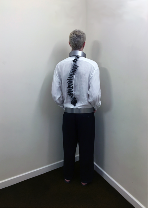 An interactive piece where the viewer “steps into” the spine, whilst watching the video. Inspired by the cracking of fingers, a spine was created in combination with a video of cracking different joints in my body.